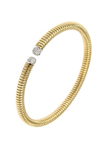 BRACCIALE IN ORO GIALLO E BIANCO 750 MILLESIMI APERTO.ANIMA INTERNA IN TITANIO DIAMANTI CT. 0.15 G SI