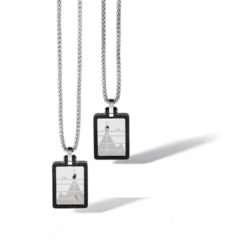 Girocollo Comete gioielli linea traguardi ref. UGL 532 in acciaio, PVD nero e rosè, Cristallo blu. Lunghezza catena 50 cm, lunghezza ciondolo 2.5 cm.