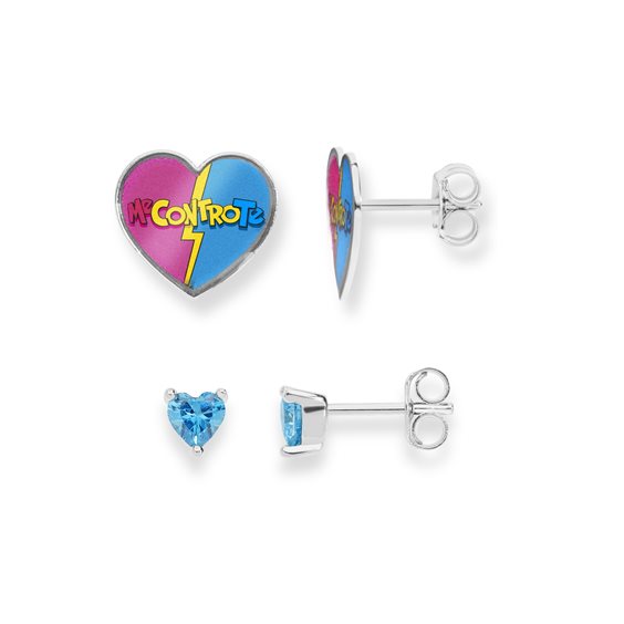 Due coppie di Orecchini Made in Italy in Argento 925% adesivo con smalto di fissaggio come protezione e cristalli azzurri