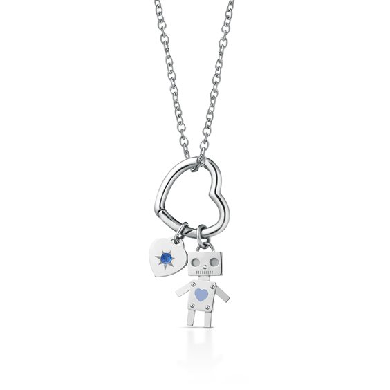 DETTAGLI COLLANA OPS!CLASP Medaglietta a forma di cuore con cristallo azzurro Chiusura a cuore a moschettone Collana dal design made in Italy Dimensioni gioiello: Lunghezza catena: 60 cm + estensione 3 cm Grandezza robot: 19,2×12,5 mm Composizione gioiello: Acciaio Garanzia gioiello: 2 anni Confezione gioiello: Scatola originale color argento logata OPSOBJECTS