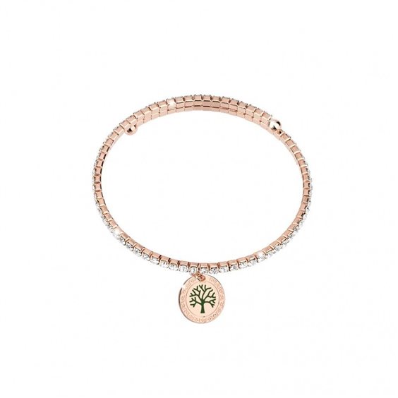 Il bracciale MyWorld a molla è in bronzo placcato con charm Albero della vita pendente e cristalli.